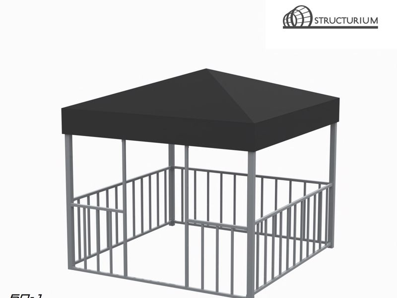 При производстве Беседки используется профильная труба 80*80*3мм, 40*40*2, 30*30*2 и 40*20*2мм. Покраска полимерная порошковая с предварительным нанесением цинкосодержащего грунта, цвет серый. Покрытие крыши - акриловая ткань или ПВХ.