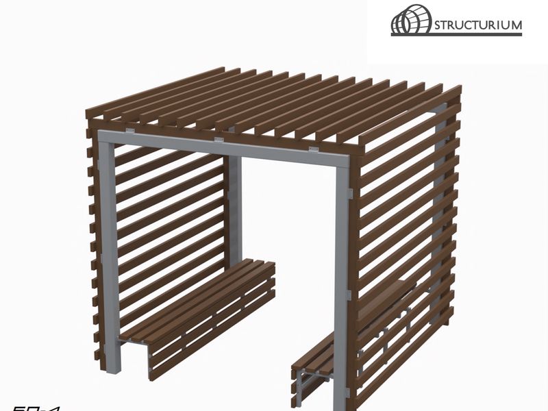 При производстве Перголы используется профильная труба 120*120*3мм и 40*40*2мм. Материал обшивки – доска 100*40мм обработанная атмосферостойким покрытием. Покраска полимерная порошковая с предварительным нанесением цинкосодержащего грунта, цвет серый.