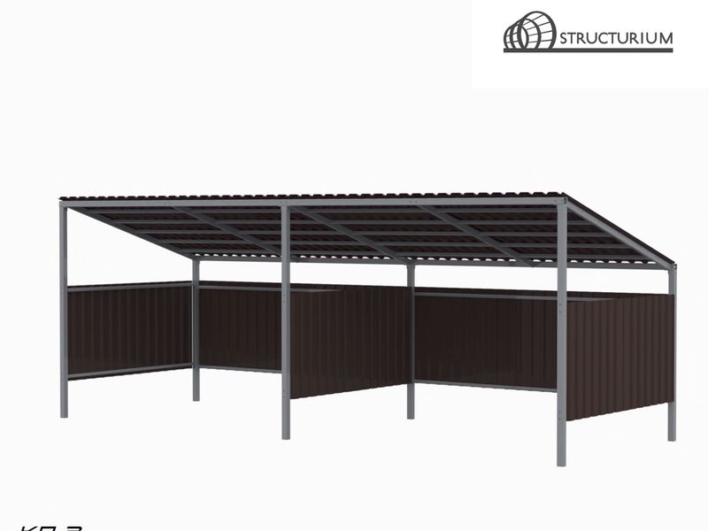 При производстве Контейнерной площадки используется профильная труба 60*60*3мм, 60*30*3мм и 30*30*2мм. Покрытие крыши и обшивка по периметру – профлист. Покраска полимерная порошковая с предварительным нанесением цинкосодержащего грунта, цвет серый.