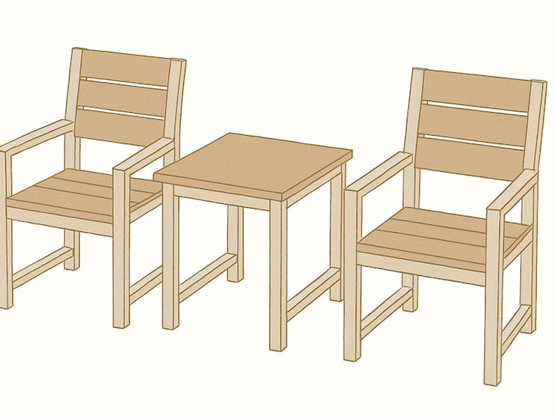 Каркас стульев и столов выполнен из профильной трубы с сечением 60×40×2 мм и 60×30×2 мм, что обеспечивает надежность и стойкость к внешним воздействиям. Сиденья и спинки стульев сделаны из доски размером 100×40 мм и 100×30 мм, соответственно, обеспечивая комфорт и долговечность.