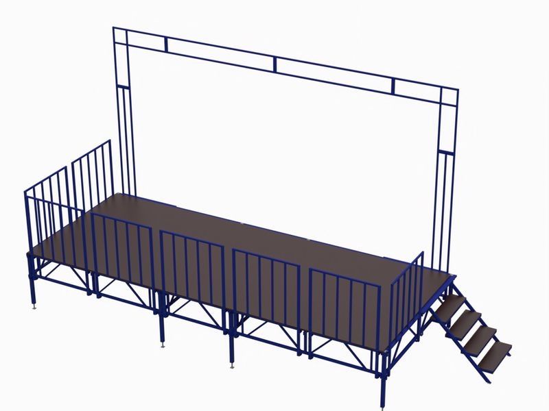 Оснащён прочной рамой для крепления рекламных или сценических баннеров. Каркас — профильная труба 50×50×3мм, рама — 40×25×2мм. Настил — фанера 21мм с антискользящим покрытием.